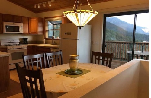The house has central heating and a wall mounted AC, a wood stove, large TV with Amazon Firestick, an outdoor perch overlooking the mountains, , and large closets. The driveway is long with a steep entrance which may require all-wheel drive or chains when it snows. You are required to carry chains with you in the winter. Due to the presence of bears, precautions with food and bear attractants must be observed.