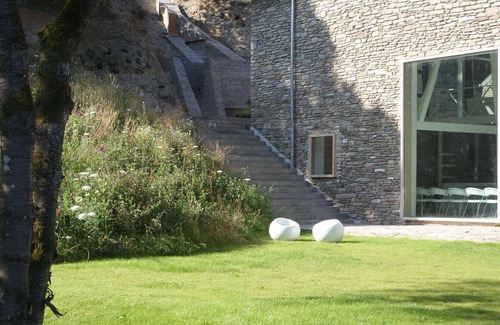 This spacious holiday home accommodates 24 to 34 guests, perfect for family gatherings, friends, or corporate retreats. Perched atop a mountain, it offers breathtaking views of the Lesse River and Ardennes forests. Guests enjoy close proximity to the Almache and Marche rivers, the charming book village of Redu, and the Euro Space Center. Hiking opportunities abound in Europe’s most connected forest, while supermarkets lie just 7 km away. Designed for large groups, the home features a vast living area, a dining room with a large table, and an open kitchen ideal for communal cooking. Outside, there’s an outdoor kitchen with a fireplace, terraces shaded by plane trees, and a private village square. Parking for 12 cars is on-site, with extra parking nearby. House rules ensure a peaceful stay: no disturbances to neighbors, a strict maximum of 34 guests, and no loud personal audio devices (an in-house system with HD+ screen is provided for presentations).