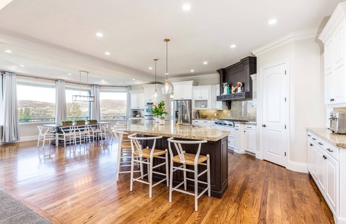 Looking for the ultimate corporate retreat destination? Look no further than this breathtaking 16,000 sqft mansion on three stunning acres in the Lone Peak Wilderness area. This property has it all, including 11 spacious bedrooms, three kitchens, three living rooms, and an indoor basketball/pickleball court for unleashing your competitive side and staying active during your stay. Perfect for friendly games or serious tournaments, this unique feature is perfect for corporate retreats or family reunions looking to bond over some friendly competition.