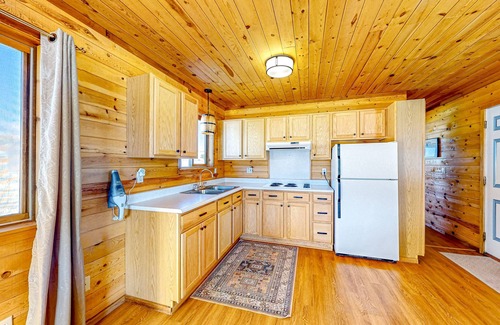 Inside, relax in the warm, wooden interiors on the comfy sofa, or cook up a delicious meal in the full kitchen (including a fridge, stove, countertop convection oven, and coffee maker), hosting everything you need for effortless mealtimes. As the evening winds down, play corn hole or ring toss, then lounge around the firepit for s’mores under the stars. This truly one-of-a-kind alpine retreat is certain to inspire lifelong memories of a magical time spent in Southern Colorado.