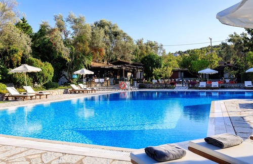 Mousses Villas are a cluster of 12 detached and semi detached houses situated in one of the most child friendly areas in Greece. The villas are set in lush, tropical gardens and there is a large shared, gated pool (17m by 14m). The 8 semi detached and 2 detached houses have 2 stories, with 2 bedrooms and one bathroom, and sleep up to 5 people (one person on a camp bed in the living room) and have open plan fully fitted kitchen/dining and living areas. There are also 2 villas with private pools (11m by 6m) and these have 3 bedrooms (they sleep 6) and 1 bathroom and 1 shower room with washing machine, as well as a large open plan fully fitted kitchen/ living and dining room . All the houses are air conditioned throughout and there is wifi in the communal areas. There is a poolside bar and taverna on site so there is really no need to go out but if you want to Lefkada town is only a 10 minute drive away. there is a mini market within 5 minutes walk and the beach of Agios Ioannis is a 5 minute drive. Preveza airport is just 30 minutes away. There is also access to the kids clubs catering for children between 6 months and 11 years. Four half day sessions with one evening session (mornings are from 9.30am to 13.00 on Monday, Wednesday, Thursday and Friday with an evening session from 19.00 to 22.30 on a Tuesday and the afternoon sessions are from 14.00 to 17.30 Monday, Tuesday, Wednesday and Friday with an evening session from 19.00 to 22.30 on Thursday). This is charged at €210 a week for children aged between 3 and 11 and €240 a week for children aged between 6 months and 3 years. This needs to be booked in advance as there are only a certain amount of children allowed per session.