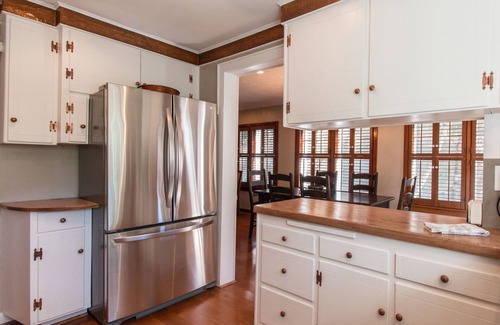 As wonderful as the interior is the outside may be the best part. Entry gate will delight you as you enter the garden. Wisteria, honey suckle and Cecil Brunner roses climb the the entire fenced yard. Throughout the garden camillas, roses, peones, hydragaes and ferns bloom in many colors each season.