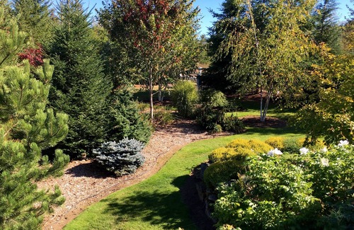 The large living room seats 3 - 4 and dining area seat 3, with huge picture windows overlooking your own private spectacular Olympic Peninsula & Canadian Ocean View, Alaska Cruise & freight shipping lanes, & your private gardens. You can pick from our many fruit trees and our seasonal vegetable beds (when available) to make a lovely healthy meal for yourself if you are in a pinch & could not get to the local organic markets in Sequim (Nash's Farm Stand or Sunny Farms Market) or Port Angeles (Country Aire Natural Foods) or Saturday morning Farmers Markets in time.