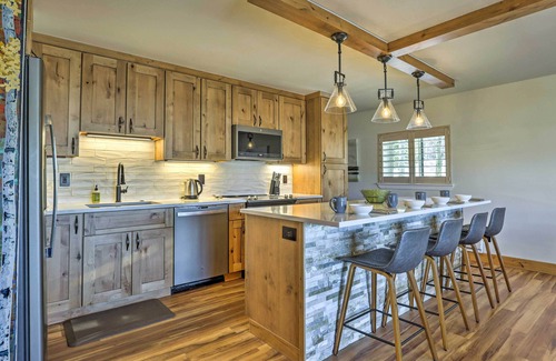 You can’t beat snowcapped mountains and dazzling views of Dillon’s Bay, so look no further than this picturesque vacation rental in Dillon! This 2-bedroom, 2-bathroom condo is the perfect setting for a winter ski trip or a summer getaway. Hit the slopes at Keystone Resort or Arapahoe Basin Ski Area — both within a 10-mile drive from the property — or make a splash at Dillon Reservoir. At the end of the day, refuel with a soak in the community hot tub before cozying up around the gas fireplace.