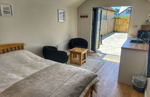 The annex features a bright and airy open-plan layout with a comfy double bed, relaxing lounge area, dining space, and well-equipped kitchenette – ideal for lazy breakfasts or light dinners after a day by the sea. You'll have a private entrance and your own outdoor space to enjoy morning coffee or a glass of wine in the evening.