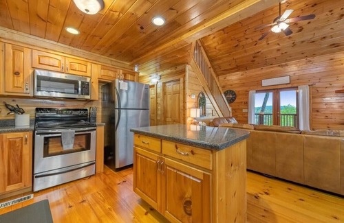 Your heart will be captivated by the majesty of The Muses' Mountain View Lodge! Indulge in entrancing views from on high and revel with your loved ones as you soak up the warm sunshine. Toast a glass of wine to blissful blessings while submerged in our heavenly hot tub - perched atop the highest summit nestled within Coosawattee River Resort's gates. Let us pamper you; all are welcome at this divine family-friendly retreat.