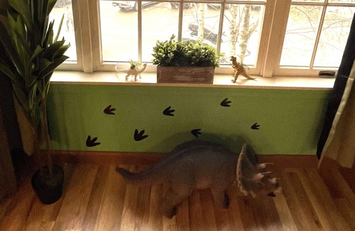 And of course, dinosaur themed games, decor, bedding, furnishings - Its all their to have fun exploring the room as much as Jiminy.