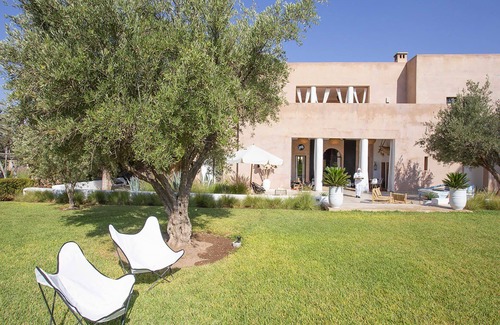 Villa Zagar is a magnificent property situated in a quiet area of Palmeraie in Marrakech, surrounded by a garden, spacious and well maintained, with olive trees and Mediterranean plants, this space hosts also the swimming pool (it can be heated on request) a terrace with sunbeds where to relax in the hottest days, a pool house with outdoor showers. Several lounge areas with sofas and coffee tables where to enjoy an aperitif all together, this is the ideal place where to spend unique holidays with the family and a group of friends.