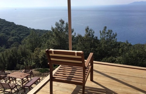 A full Sea View (almost 180 degrees) villa style accommodation: first floor with 2 bedrooms, one Ensuite, very large living room and large balconies (3 in total) by the Sea in a Forrest. Large windows all around for a great sea views from bedrooms and the living room. Nature, History, Culture, Swimming and Trekking. All modes and cons and the Internet. Self catering but home style, breakfast, lunch and dinner may be served upon request. Car rides to short distances by the owner is possible.