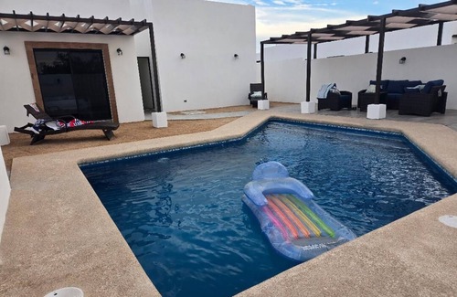 Welcome to this marvelous house minutes outside of La Paz in El Centenario. This newly built property features 3 bedrooms, pool with outdoor kitchen, rooftop with some ocean view, courtyard and chef's kitchen. Our beautiful home is minutes from the airport, beaches galore, street food, the Malecon of La Paz and more.