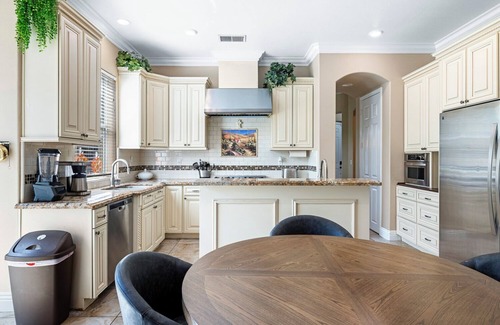 The home features an open floor plan that connects the living room, kitchen and dining areas. The main living room is an excellent place to relax and enjoy each other’s company. It is equipped with a 75" Smart TV, powerful sound system and HIGH speed internet which allows you to stream cable TV and your favorite apps.