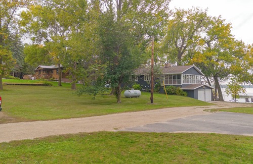 Lake cabin located on Lake Ida! Spacious home comfortably sleeps 13 with 3 bedrooms and an additional bunk area. The main floor has two bedrooms, living room, kitchen, one and a half baths, and the sunroom.You can access the wrap around deck right from the kitchen, living room or sunroom. The lower level walkout has a bedroom, large family room, a full bath, and an additional space beside the family room with bunk beds, as well as a laundry room with laundry sink and an additional refrigerator. The large patio has an outdoor dining space and a gas grill.