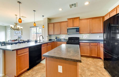 Near Parks & Golf: Maricopa Home w/Covered Patio! is located in Maricopa. Near Parks & Golf: Maricopa Home w/Covered Patio! provides accommodation, featuring Kitchen, Bedding/Linens, Entertainment, among other amenities. This House features Kitchen, Bedding/Linens, Entertainment, to make your stay a comfortable one.