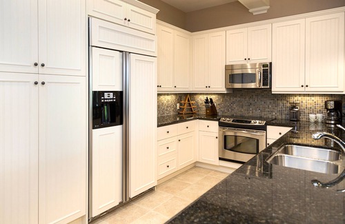 This two-story townhome sleeps up to six guests in the three bedrooms. Two full bathrooms and one half bath are each stocked with plenty of plush towels and a complimentary starter supply of toiletries.