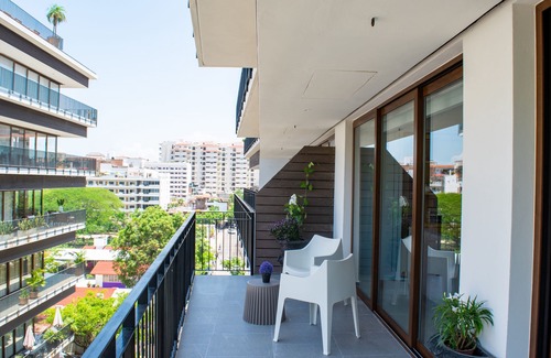 Just 2 blocks to the beach, in the Romantic Zone in Puerto Vallarta. New building. Walk everywhere!!