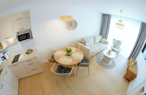 New apartment with balcony, swimming pool, fitness, sauna, 300 m from the beach is located in Kolobrzeg. New apartment with balcony, swimming pool, fitness, sauna, 300 m from the beach provides accommodation, featuring Fireplace/Heating, Child Friendly, Kitchen, among other amenities. This Apartment features Fireplace/Heating, Child Friendly, Kitchen, to make your stay a comfortable one.