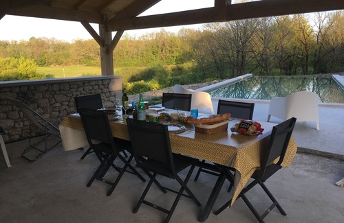Relax and enjoy time with your family and friends in this special haven of peace and beauty (Les Barras is situated in a designated area of outstanding beauty). Breathtaking views may be taken in either from the lawns on the south facing front garden, or from the luxury infinity swimming pool (12m x 5m) situated just meters from the house. Designed with alfresco dining in mind, the pool house and BBQ area offers shade when needed, a WC and outside solar heated shower. The grounds are fully enclosed with access through electric gates. A truly unique home that welcomes you to make happy holiday memories.