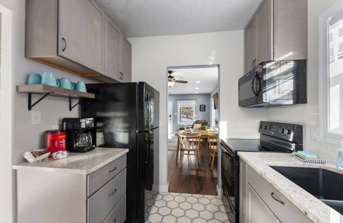 Welcome to New Cottage Steps From Sanford, a beautifully renovated retreat in Sioux Falls. Just a short walk from Sanford Hospital, this pet-friendly property features a cozy interior and a fenced backyard perfect for relaxation or furry companions. Street parking and a few steps lead to a charming entrance, making it an ideal stay for professionals, travelers, and families. Enjoy modern updates and a convenient location in this inviting space!