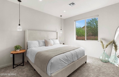 Get ready to relax in this brand new 3-bedroom house in Tucson. This lovely property features 1 king bed and 2 queen beds, perfect for a tranquil getaway. With amenities like heating, AC, WiFi, and a washing machine, guests can enjoy a wonderful stay. The 2 bathrooms are equipped with showers and hair dryers for added convenience. We look forward to welcoming you to our place.