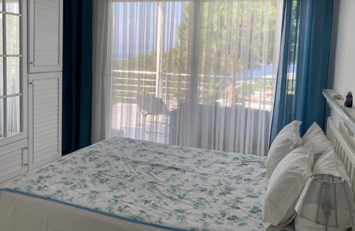 Brand new construction luxurious Villa with tall windows and four balconies to appreciate the fantastic Aegean Sea view. Safe and elite neighborhood with free of charge access to Olympic sized swimming pool and three separate private beaches on the Gundogan peninsula within 3 minutes driving, an incredible value in Bodrum. The neighborhood has walking distance access to restaurants, pool and sea side bars, grocery shop that does home delivery and multiple gathering centers for social activities.