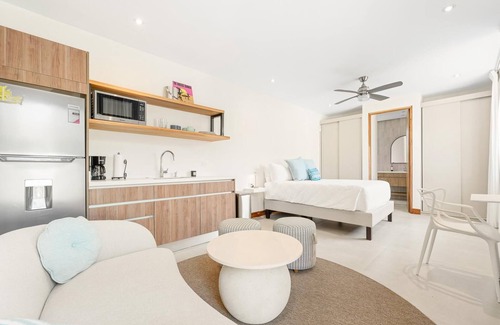 ⁃ a charming studio with a queen bed, private entrance, and kitchenette—perfect for couples or solo travelers seeking tranquility and a laid-back surfside retreat.