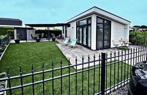 Our new chalet (year of construction 2021/22) with large terrace approx. 200m2 and roofing 6x5m is completely new and modern furnished and has a modern central heating. The furnished terrace with barbecue, sunbeds, table and chairs faces south and invites you to relax and unwind. The mobile home is fully equipped and suitable for 1 - 5 people. It has a living room with sofa bed 1.4x2.0m, 1 bedroom with double bed 1.6x2.0m, 1 bedroom with double bed 1.4x2.0m, a modern kitchen with oven, microwave, refrigerator, dishwasher, coffee maker, kettle, toaster, as well as associated crockery, pots and cutlery. Large bathroom with shower + toilet. In addition, LED TV with DE and NL TV programmes, community games, children's high chair, travel cot and private parking directly at the house!