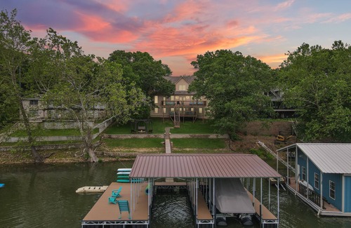 Large (5000 SF) Luxury Lake Front Oasis in No-Wake Zone Cove with brand new private dock. Brand new 2 story trex deck over looking the calm waters of fish tail cove. Brand New Hot Tub on lower deck with massive lake views. Minutes from all the amenities and action of Duck Creek. This home has 5 large bedrooms and 1 large bunk-bed room with 4 full baths and 2 half baths and sleeps 15 people in beds. This home has a large 2 story deck (lower deck has the hot tub) over-looking the peaceful waters of FishTail Cove. Ice maker, barbecue, fire pit with swing set and new large private dock round out the amenities this beautiful property. Kayaks & SUP included