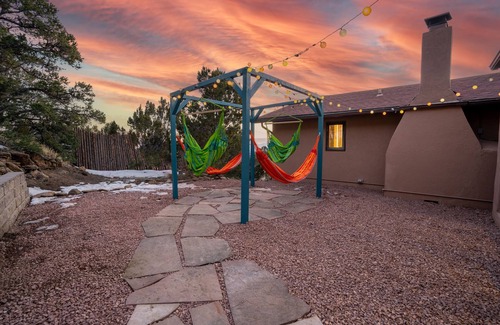 Welcome to our stunning mountain retreat with a hot tub, kiva fireplace, hammock area, game room, and breathtaking mountain views. Enjoy cooking in the fully equipped kitchen and entertain yourselves in the game room with arcade, pool/ping pong table, and board games. Outside, relax in the hot tub, unwind in the hammocks, or admire the views. Only minutes away from hiking and outdoor activities, Casa de Sueños is the perfect retreat for families and groups seeking an unforgettable getaway!