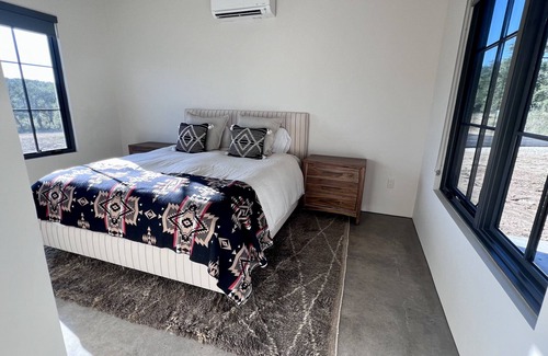 This custom home, Star Valley Ranch, sits on 46 acres. Newly built as 3 structures perfect for family & friends entertaining & enjoyment; sleeps 20. The main house has 3 bedrooms (1 is a bunkroom~ sleeps 6) & 4 bathrooms; The game room has a bunk room with 4 twin beds + 1 half bath & outdoor shower & the wood sided Casitas are 2 ensuite separated guest rooms. Enjoy acreage in the Texas hill country, while still near Austin, just past Dripping springs, and just a few miles from Pedernales Falls State Park. This area is surrounded by dark sky night properties; so there is some truly incredible stargazing here. This location feels like you've escaped deep into the heart of Texas hill country but you can be in cute small towns for dinner in less than 15 minutes (johnson city, blanco & dripping springs); or just 10 minutes to Tillie's at Camp Lucy; 30-40minutes to Austin. We spend our days here hiking the hills & strolling creekside + a long driveway for pickleball & all things wheeled; hammocks & swings... There is a propane grill, Green Egg smoker, an area to play washers; corn hole, & other outdoor games. Weather not great?: we have lots of puzzles & board games, pool and deep pool with hot tubbing while stargazing is incredible! Each bedroom has blackout curtains and is far enough from town to have a quiet & peaceful night sleep.