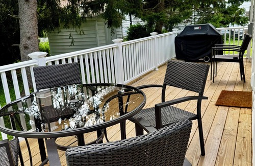 Unwind in Ballston Spa at this marvelous house. With 4 bedrooms including 3 queen beds and 1 sofa bed, along with 3 bathrooms featuring a shower and bathtub, this quaint property offers all the comforts of home. Enjoy amenities like AC, a washing machine, iron, heating, and WiFi during your stay. There is a large yard with Cornhole to enjoy a game or relax on the back porch with the Weber grill for BBQ. All of this 2 blocks away from over a dozen restaurants/taverns and Antiques, Boutiques, Med Spa, Parks, walking trails and so much more! A great place to call homebase while you're away, we hope you enjoy your stay.