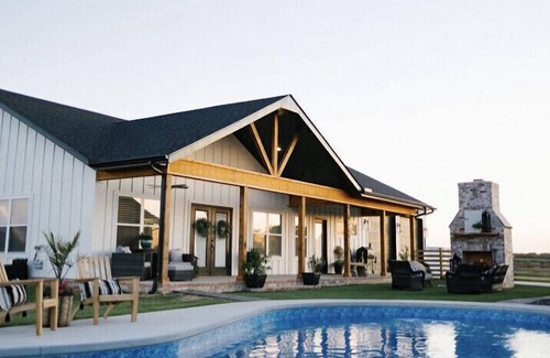 Looking for a cute new 1,600+ sq. ft. open concept guest house? This is the place for you! The spacious living/kitchen area offers plenty of room to kick back and relax or play games while visiting and preparing snacks or a meal. Large windows allow beautiful views of the countryside, pool, outdoor fireplace, raised garden beds, and grassy play area. These areas are shared by guests of both Bethel Bliss (main house) and Bethel Bloom (guest house) when both houses are rented. Located in the heart of Northwest Arkansas, this home is perfect for creating lasting memories!