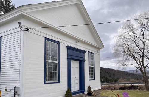 NEW! Stunning Pre-Civil War Church w/firepit near Elk Mtn is located in Susquehanna. NEW! Stunning Pre-Civil War Church w/firepit near Elk Mtn provides accommodation, featuring Kitchen, Air Conditioner, Security/Safety, among other amenities. This House features Kitchen, Air Conditioner, Security/Safety, to make your stay a comfortable one.