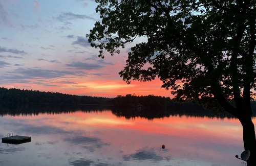 Enjoy this beautiful cottage with spectacular sunset views. Located just steps from the waters edge, you'll relax in the tranquility of the woods and call of the loons. Just minutes from Belfast, Camden, Lincolnville Beach, & Rockland - or take a day trip to Acadia National Park. Separate bunkhouse w/full bath provides ample space for all your guest needs. Back deck, patio furniture, gas grill, Firepit, Smart TV, & plenty of yard for a game of cornhole. Enjoy coffee on the dock while friends and family paddle/cruise around the lake - 2 person kayak on-site!!