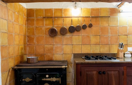 Traditional architectural details, such as antique wooden beams, combined with warm and inviting decor, create a unique and authentic ambiance.