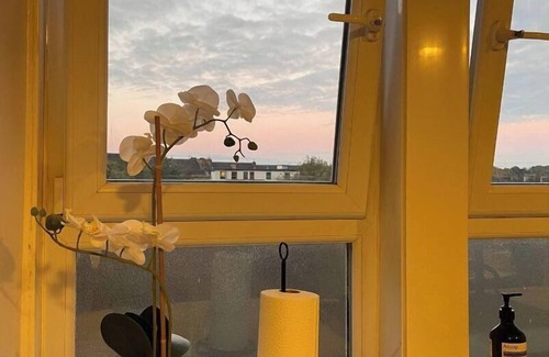 The apartment has a large, stylish living room with beautiful bay windows and great views. The TV offers a full Sky package and excellent wifi.