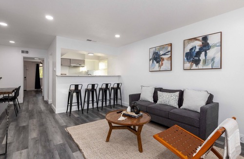New listing special - book now for low rates! Enjoy a stylish experience at this centrally-located place. This unit was designed with comfort and a taste of modern look in mind. Rest on the queen plush mattress at the end of day, watch your favorites shows on the 50" smart TV, enjoy the quietness of the surrounding community. Fully equipped kitchen for day-to-day cooking. Property ideal for Traveling nurses or Executives in Dallas.