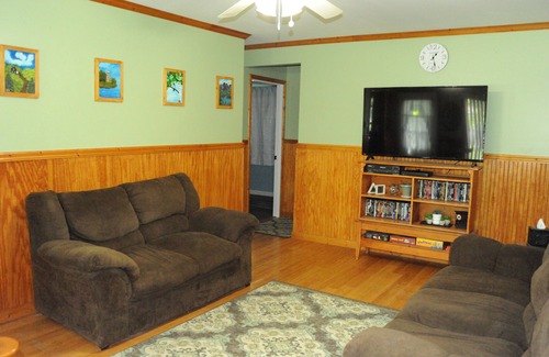 Located in Bay City, enjoy what this 3-bedroom house has to offer. With 1 queen bed, 1 full bed, and 1 double queen bunk bed, guests will find a cozy and comfortable space to relax. The property features heating and AC for your convenience. You're sure to make fantastic memories with a stay at our place. Perfect for fishing or families! Newly remodeled 3 bedroom Bay City home on a quiet dead end road. 1 mile from the Bay City State Recreation Area and the Saginaw Bay, 5 miles to Downtown Bay City: the Saginaw River and the many events and concerts, and 8 miles to Linwood and the Walleye Capital of Michigan. 3 bedrooms can sleep up to 9 people. Spacious driveway that can accommodate boat parking. Partially fenced in backyard with a patio table and chairs for 4.