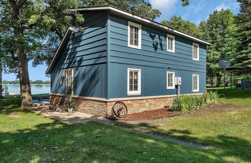 The bright and cozy (newly renovated!) home includes three bedrooms with beds for up to nine guests. Unwind in the living room with sweeping views of the lake. You will love the west facing sunsets! Three Kayaks available for guest use to get out on the water! The lake is great for fishing, swimming, boating, tubing and skiing! The game garage is ready for you with cornhole, bocce ball, and other yard games. A number of floating tubes are also provided. ***Water conditions fluctuate throughout the year. If you plan to use the lake, it is your responsibility to stay up to date on current conditions and plan accordingly***. There is no TV located at our property as we find it a great time to unplug from the busyness of life. WiFi is provided.