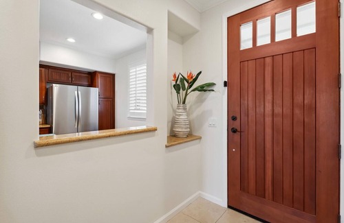 Our newly renovated luxury villa is a 2 bedroom 2 bath with a bbq kitchen on lanai. Remodel includes new carpet, appliances, beds, furniture and amazing artwork. The kitchen is stocked with everything you need for your stay. Dining table sits 6 guests comfortably and also 4 bar stools at the kitchen bar counter. The living room has a big screen tv, new blinds and a queen sleeper sofa. Master bedroom has a king bed and full bath on suite. Guest bedroom has a queen bed, and a full bathroom located next to it. The lanai has a brand new bbq with seating for 4.