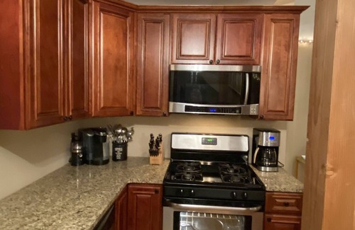 We just recently updated the inside to make it VBRO friendly for our guests. We have also added a new driveway, volleyball court, firepit and basketball outside. While we are on Route 28, the front part of the house is a separate (and empty) owners apartment - adding more privacy. The back of the house has the stream and mountains with 3 acres on the side for the kids to explore/play.