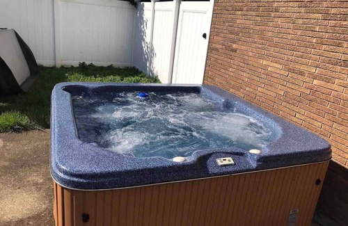• Large private back yard with grill & hot tub
