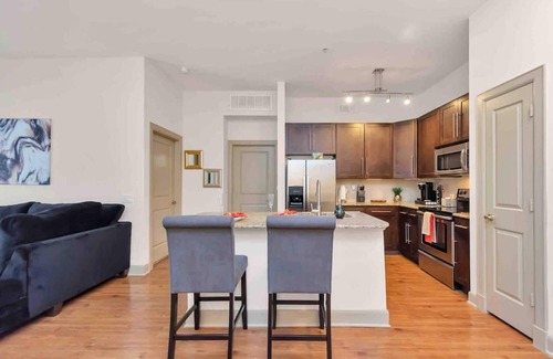 Enjoy your stay at this comfortable and lovely 2 bedroom 2 bath apartment located near the largest medical center in the world and the very popular NRG Stadium. This apartment is equipped with top notch amenities that add convenience and fun to your life. This community offers everything that will give you the home away from home feeling such as cozy beds and pillows, spacious walk in closets, high speed wifi, smart TV's, gym, pool and FREE PARKING! *
