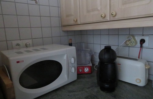 Fully equipped kitchen (oven, fridge / freezer, microwave, 4-burner gas hob, coffee maker, Dolce Gusto espresso, plancha, kettle, dishes)