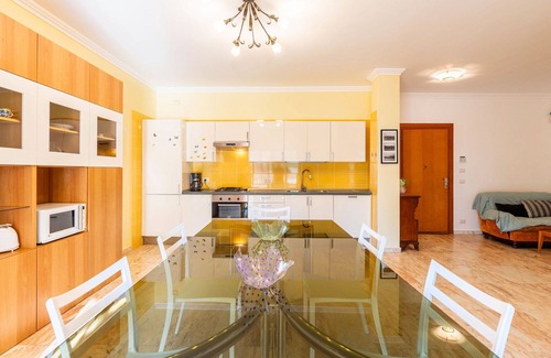 The apartment is furnished with a range of convenient amenities to make your stay more enjoyable. These include a washing machine, mosquito net, children's high chair, baby cot suitable for up to 2-year-olds, and a hair dryer. You will also have access to complimentary WiFi internet during your stay. Furthermore, the property offers a garage for your convenience. It's important to note that one pet or dog is allowed on the premises.