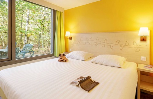 Large, child friendly resort "Park Les Hauts de Bruyères". 3.5 km from the centre of Chaumont sur Tharonne, 41 km from the centre of Orléans, outside the resort, 59 km from the centre of Blois, in the countryside. For shared use: swimming pool, indoor pool heated (seasonal availability: 01.Jan. - 31.Dec.). Shower/WC in the pool area, children's pool, slide, tennis (extra), badminton (extra), children's playground (slide), petting farm. In the complex: reception, restaurant, bistro, WiFi, sauna (extra). Massage (extra). Steam room (extra). Bowling (extra). Table tennis (extra). Shopping facilities, boutique, bicycle rental. Available: canoe (extra). Bread roll service. Pre-arrival grocery service. Central parking spaces. Railway station "Lamotte-Beuvron" 10 km. Nearby attractions: Château de la Fierté Saint-Aubin 17 km, Basilique royale Notre-Dame-de-Cléry 35 km, Château de Chambord 40 km, Cathédrale Sainte-Croix d'Orléans 41 km, Château de Cheverny 50 km, Zoo Parc de Beauval 75 km. Please note: car-free holiday complex, car recommended. Entertainment. Suitable for families, childminding (extra). The owner does not accept any youth groups. Fishing [permit required]. The photograph shows a typical example. Additional accommodations can be booked.
