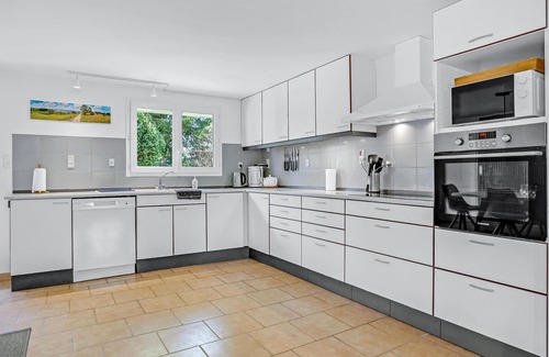 The center of the house is the large living area with cozy sofa, large dining table and open kitchen where you can spend many social hours with family or friends eating or watching TV. The three bedrooms are all equipped with double beds and offer good retreats after a long day of vacation. With baby chair, crib and changing table, the house is also a good place for a vacation with child. On rainy days, entertainment is provided with Chromecast, cable TV, Wi-Fi and co.