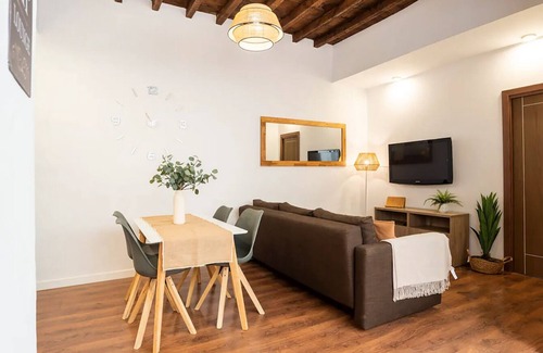 Disfruta de este apartamento moderno con toques rústicos en el centro de Málaga. Ideal para vacaciones o negocios, tiene capacidad para 6 personas.
