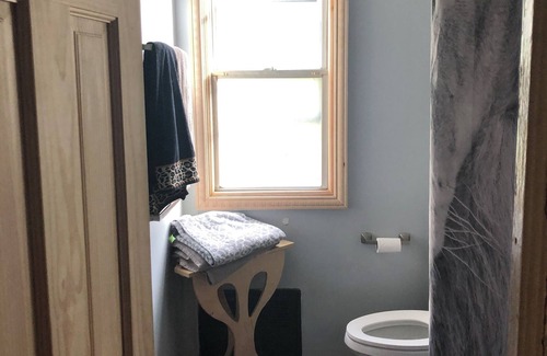 Room is newly decorated. Queen size bed, WiFi, 64”Smart TV, Refrigerator in room, sun room, work and eating space. Private entrance, NO Shoes please, Bathroom with soap, shampoo, etc. upstairs (approx. 25 steps). You will sleep comfortably here!