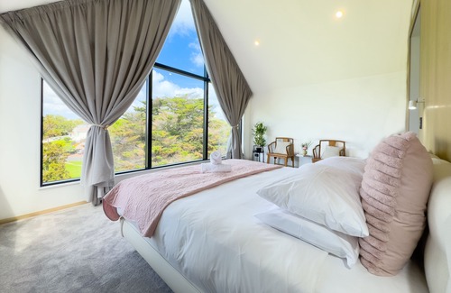 Located at 2 Waimana, North Auckland, this chic 4-bedroom house offers sweeping city sights through vast windows. It's adjacent to Stafford Park, near Onepoto and Magical Park Playgrounds. Just 15 minutes from Queen Street and Takapuna Beach, 20 to Albany Centre, and a mere 10 from vibrant Ponsonby. Inside, an open design, a state-of-the-art kitchen, and plush king & queen beds welcome guests. Suited for short or extended stays, it's equipped with modern amenities and offers free unlimited WiFi.