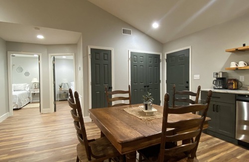 This secluded, newly constructed cabin in the woods sits a few feet from the Northwoods Trail System and less than 5 minutes from Historic Bathhouse Row in Downtown Hot Springs. The cabin is perfect "basecamp" for downtown dining, shopping or adjacent/nearby trails.